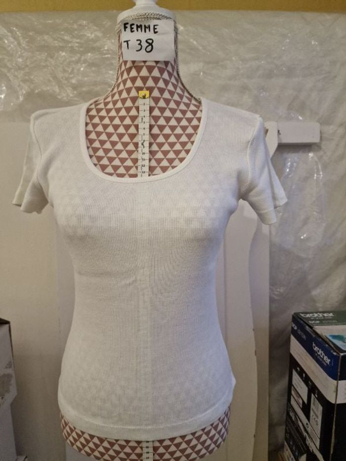 Tee-shirt, blanc, en coton, en très très bon état, longueur 55cm, marque La Redoute =4€
