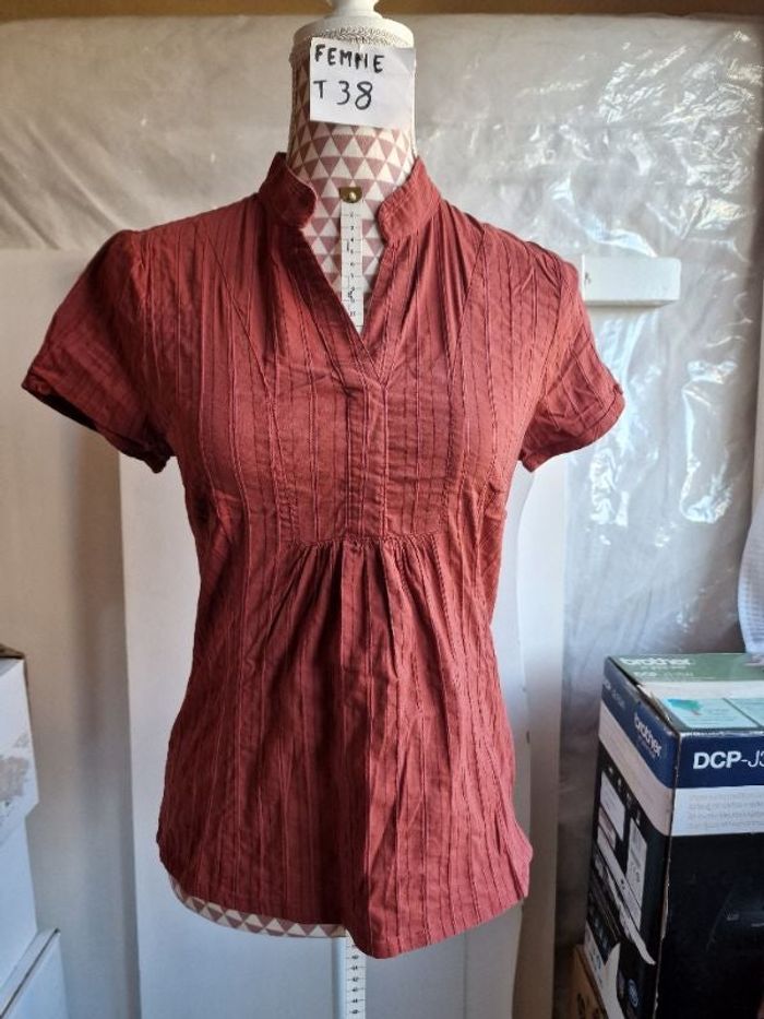Tunique, rouille, en très très bon état, en coton polyamide viscose elasthanne, longueur 56cm, marque Etam =4€