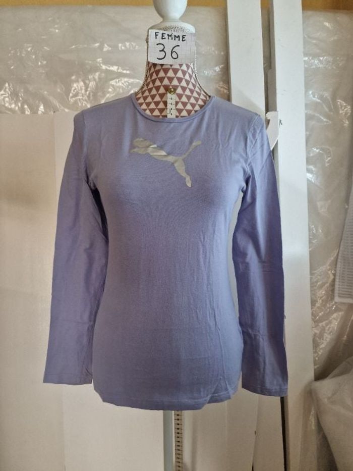 Tee-shirt, mauve, en coton, en très très bon état, longueur 61cm, marque Puma =8€