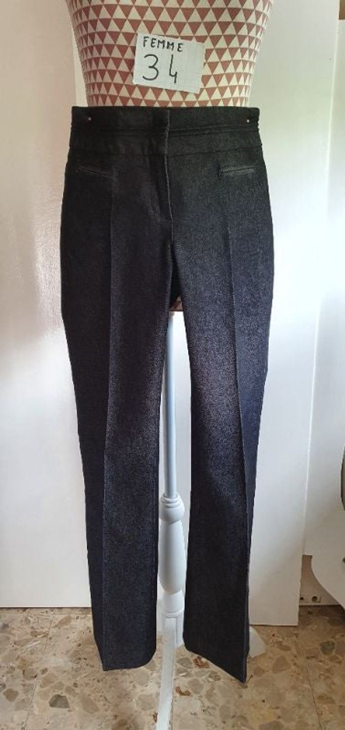 Pantalon, noir chiné/gris, en très très bon état, longueur 91cm, en coton, polyester&elasthanne ,tai