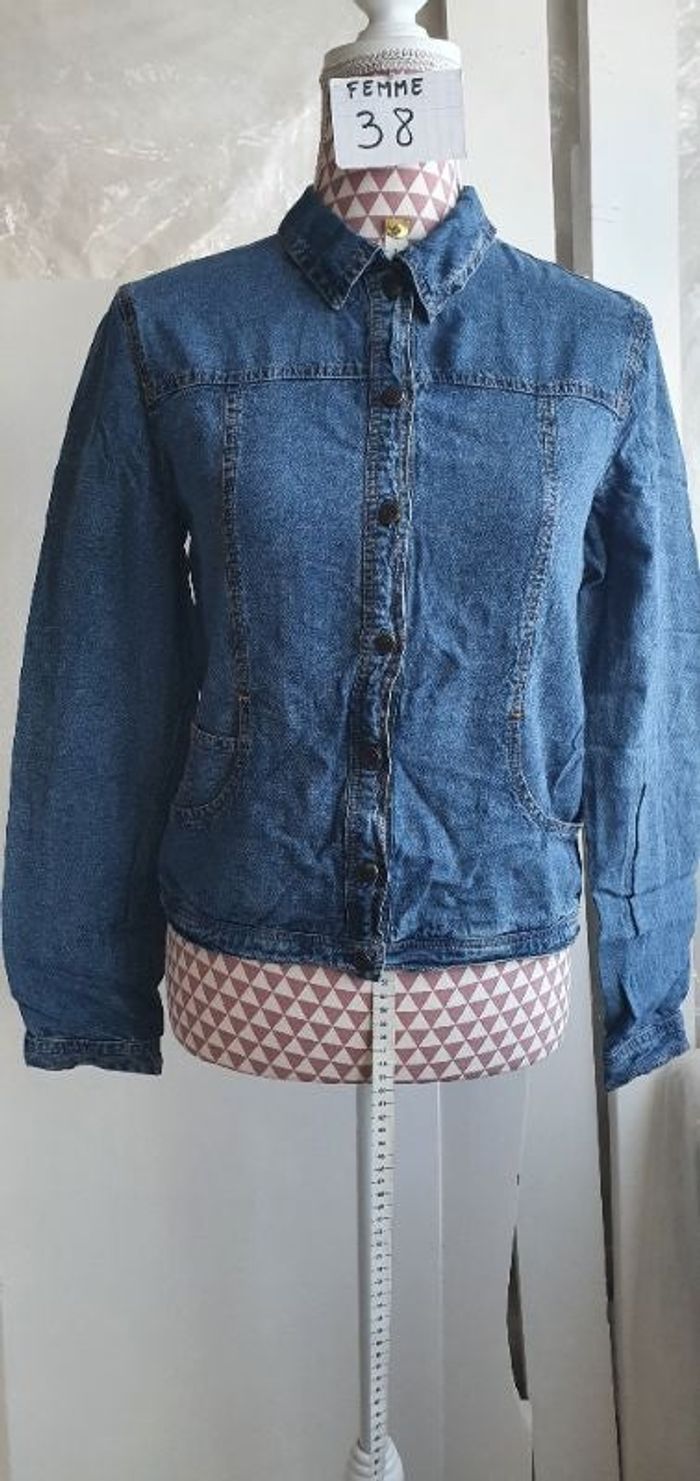 Veste, façon jeans, en Lin&Lyocell ,en très très bon état, longueur 51cm,marque pure&simple =4€
