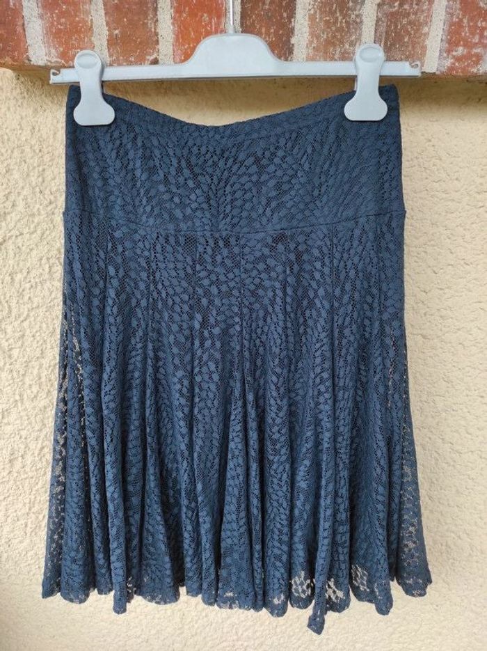 Vends jupe marine fluide et dentelle Taille 36 Armand Thiery Taille élastique - doublure polyester Polyamide/elasthane Excellent état