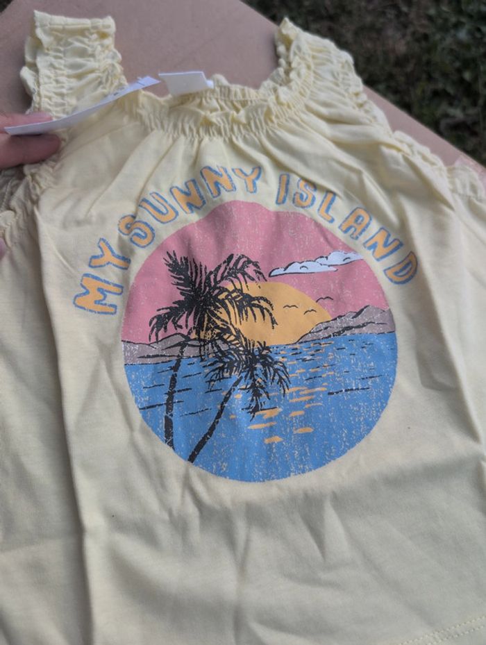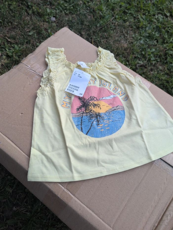 T-shirt jaune Sans manches Taille 80 9/12 mois Neuf avec étiquette H&M #h&m #neuf #femme #maillot #bain #maillotdebain #kaki #vert #culotte #80 #tshirt #fille