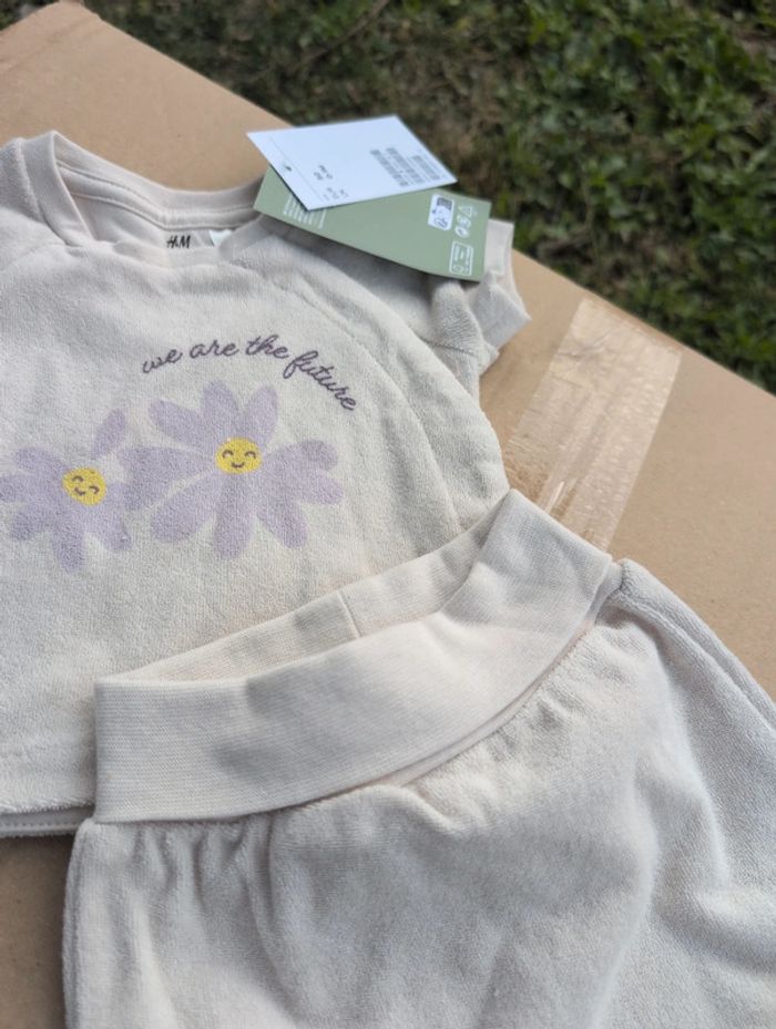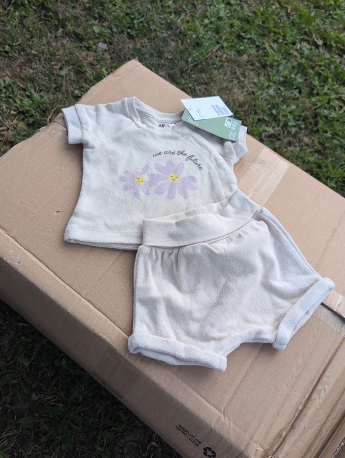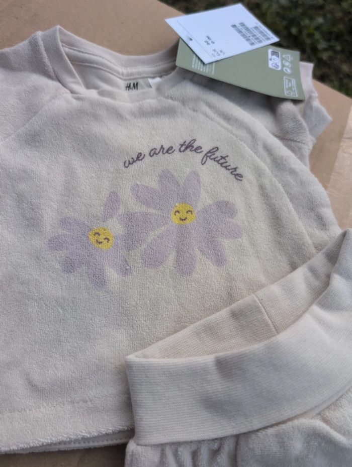 Ensemble bébé Fille Beige avec dessins violet Neuf avec étiquette H&M Taille 50 #h&m #neuf #femme #maillot #bain #maillotdebain #kaki #vert #culotte #bebe #ensemble #neuf