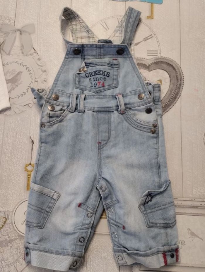 Salopette en jean bleu clair bébé garçon taille 6 mois mais taille grand plutôt 9/12 mois