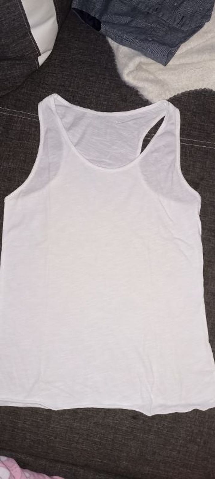 Lot de débardeurs femme dos nageur Un rose, un blanc et un rayé doré beige. Parfait état Taille 1