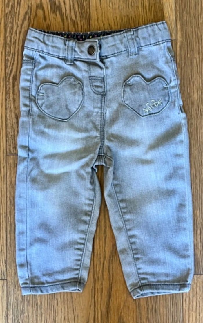 Jean gris, 2 poches cœur devant. Taille élastiquée.