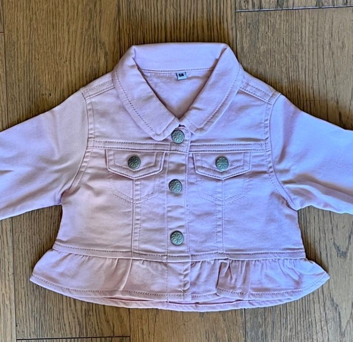 Petite veste rose, style petit blouson en jean, volantée dans le bas. 95% Coton - 5% Elasthane.