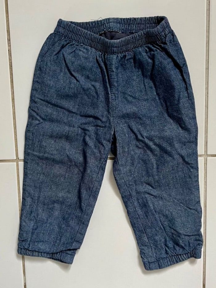 Pantalon style jogging, en toile bleu jean. Doublé bleu marine.