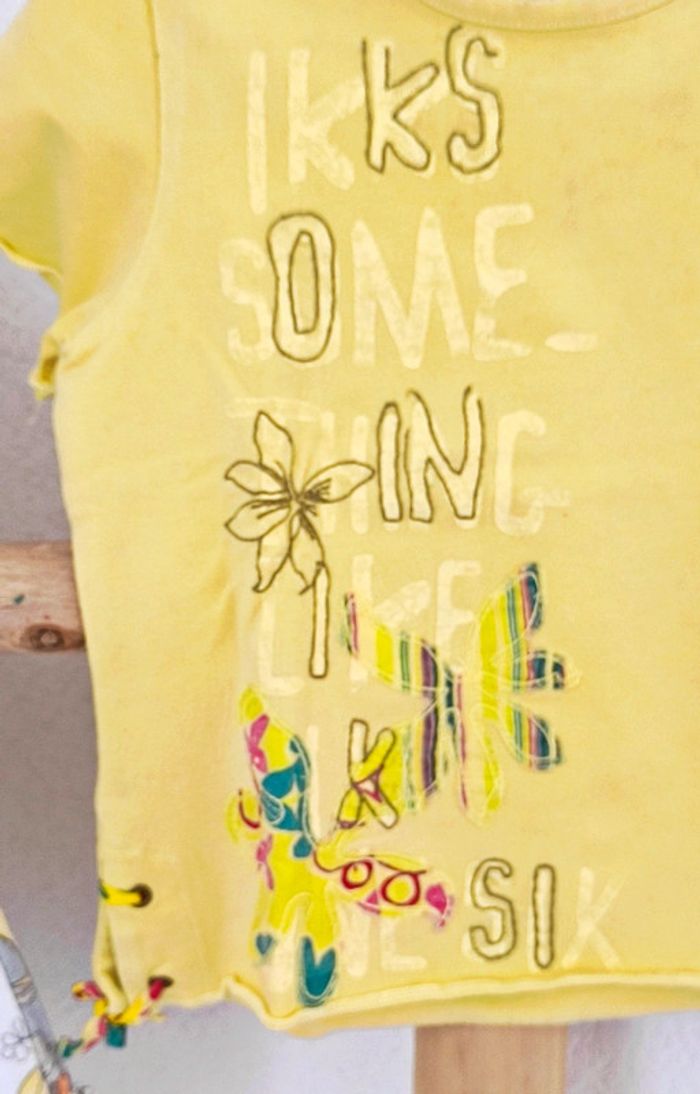#loulaliefille18mois dans la recherche pour mon dressing 18 mois fille - robe vintage en lin blanche fleuri gris , orange, jaune - t-shirt IKKS j'ai e avec motifs brodés noté 2 ans mais taille 18 mois . - tunique fine bretelle Orchestra rose , tissu fin et broderie avec sequins. - t-shirt tout compte fait, rise inscription brodée. Kiabi seconde main possible