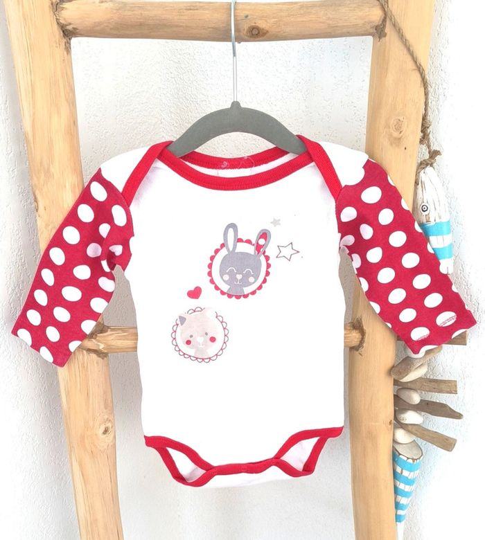 #loulaliefille6mois dans la recherche pour voir tout mon 6 mois Body mots d'enfants , blanc et manches rouges a gros pois blanc , motifs lapin , ourson et coeur . Noté 3 mois mais taille immense va pour du 6 mois. Kiabi seconde main et beebs possible