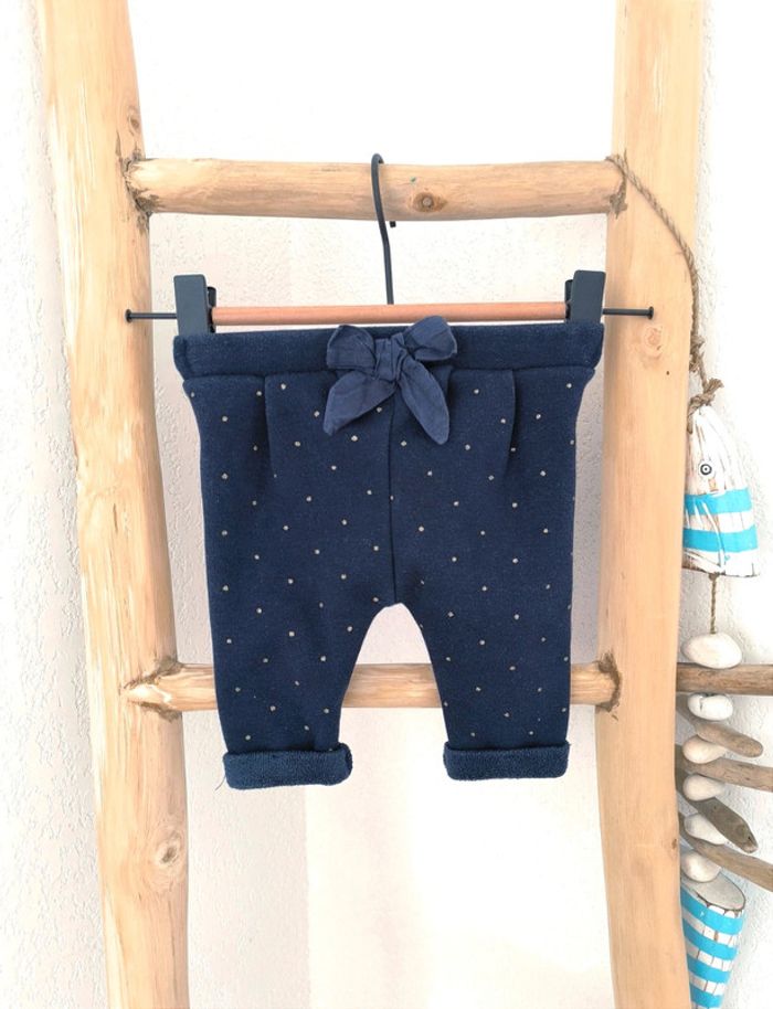#loulaliefille1mois dans la recherche pour voir mon dressing 1 mois fille Kiabi Pantalon sweat molletonné bleu marine et pois dorés 1 mois Kiabi seconde main ou beebs possible