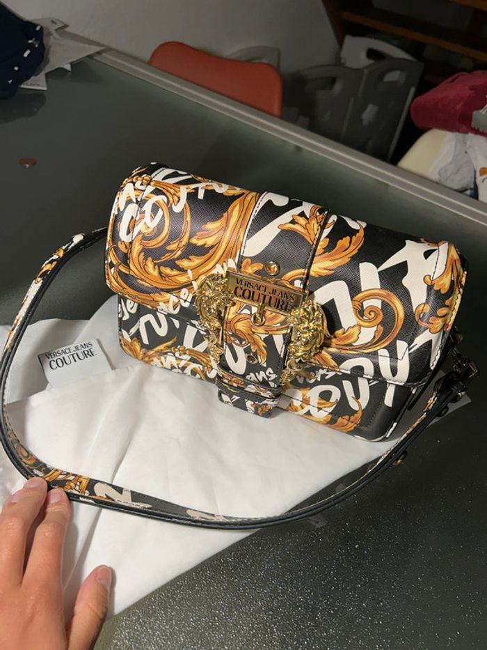 Bonjour , Je vends un sac à main de la marque Versace, jean couture La bandoulière peut se mettre courte ou longue En excellent état Acheter dans une petite boutique indépendante qui revend la marque malheureusement je n’ai plus de ticket de caisse Très peu servi