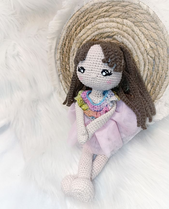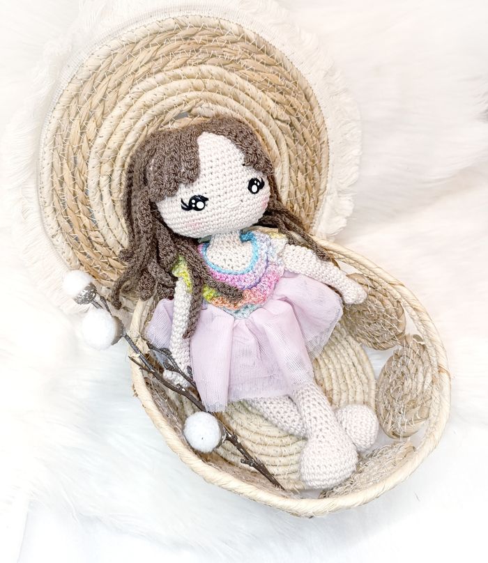Poupée en crochet fait main ballerine arc en ciel - photo numéro 3