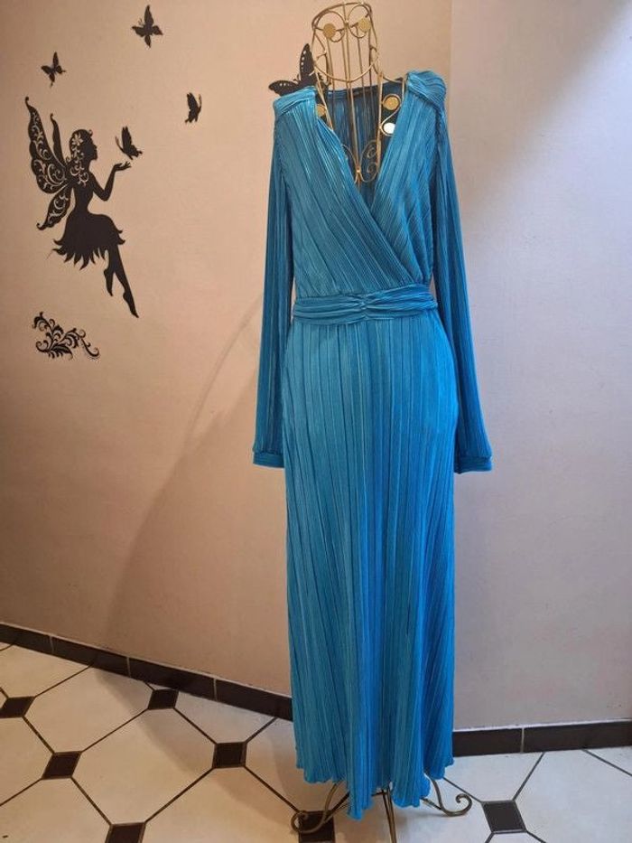 Robe longue bleue plissée - longueur 140 cm - coupe cintrée par une taille élastique qui s'adapte à votre morphologie - matière légère & fluide - taille unique idéale pour les tailles 36 & 38 - fabrication italienne - état sans défaut ps : je ne fais pas de photo portée #robelongue #robelongueplissée #robelonguebleue #robelonguemadeinitaly #madeinitaly