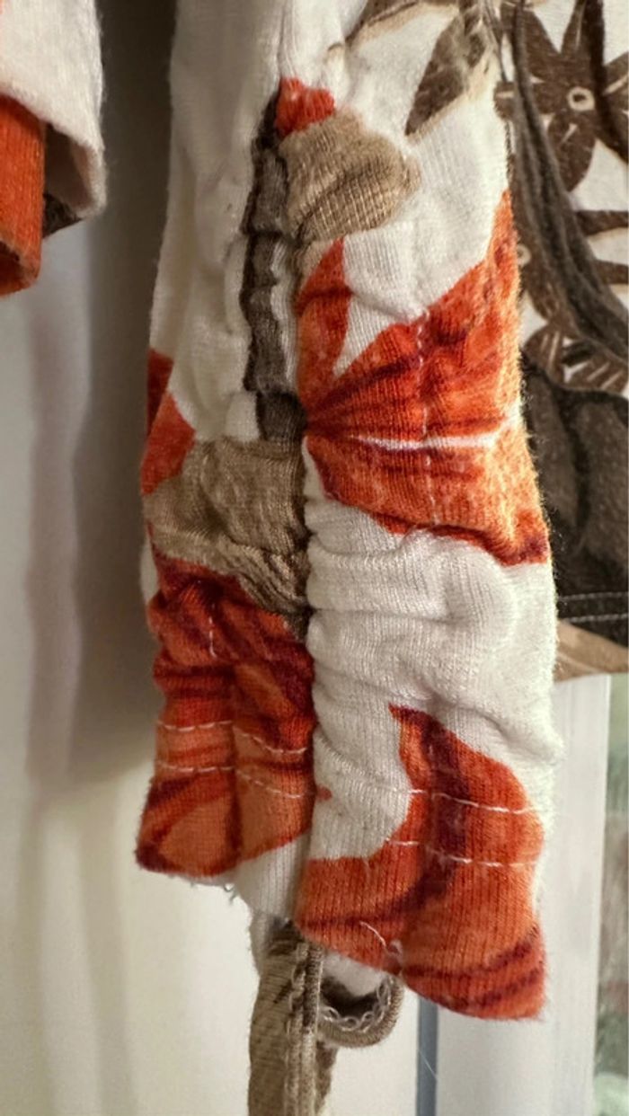 Porté quelques fois. Pas de trou ni tâche. Froncé sur le bas, des deux côtés. Étiquette coupée.