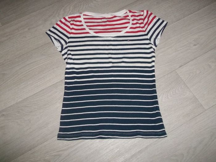 Tee shirt TOMMY HILFIGER rayé bleu, blanc, rouge taille M TBE
