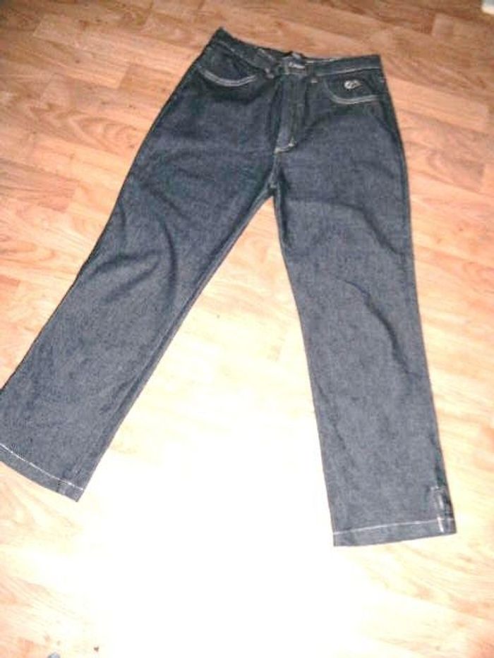 Pantacourt COTE ANGLAISE jean bleu foncé coutures dorées taille 38 TBE