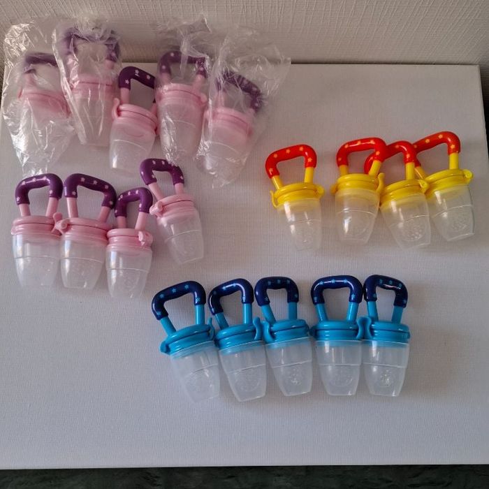 Lot de 18 sucettes à Fruits pour bébé. Vous mettez un morceau de fruit (ou légume) et votre bébé va téter le jus sans en avoir ni la pulpe, ni la peau ni les pépins. Neuves car cessation d'activité (mais sans emballage). réductions sur lot activée. Aucune remises supplémentaires pour ces articles . #bébé #sucettebebe #sucetteafruitbebe #sucetteafruit