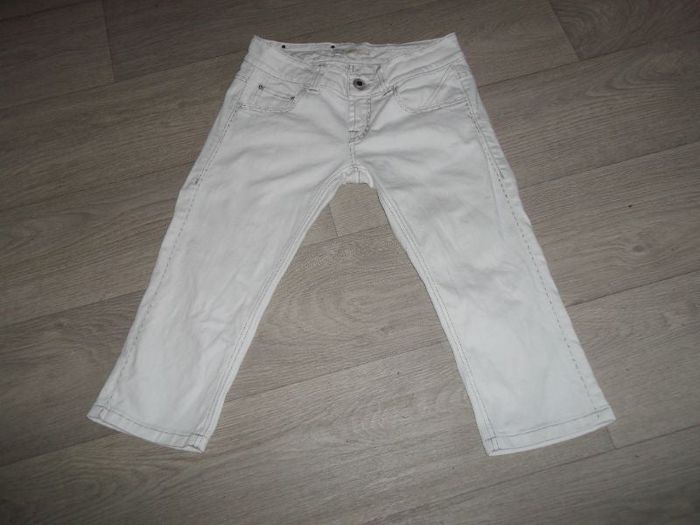 Bermuda FRACOMINA jean blanc coutures argentées et broderies mordorées 42 TBE