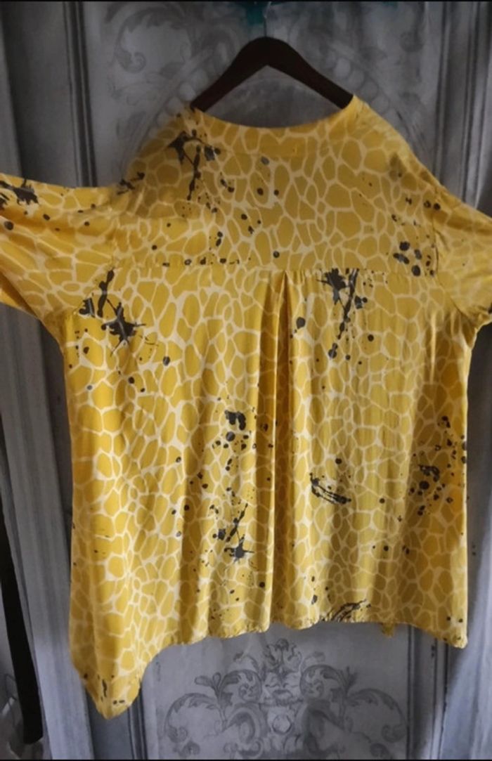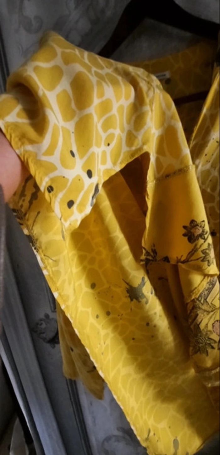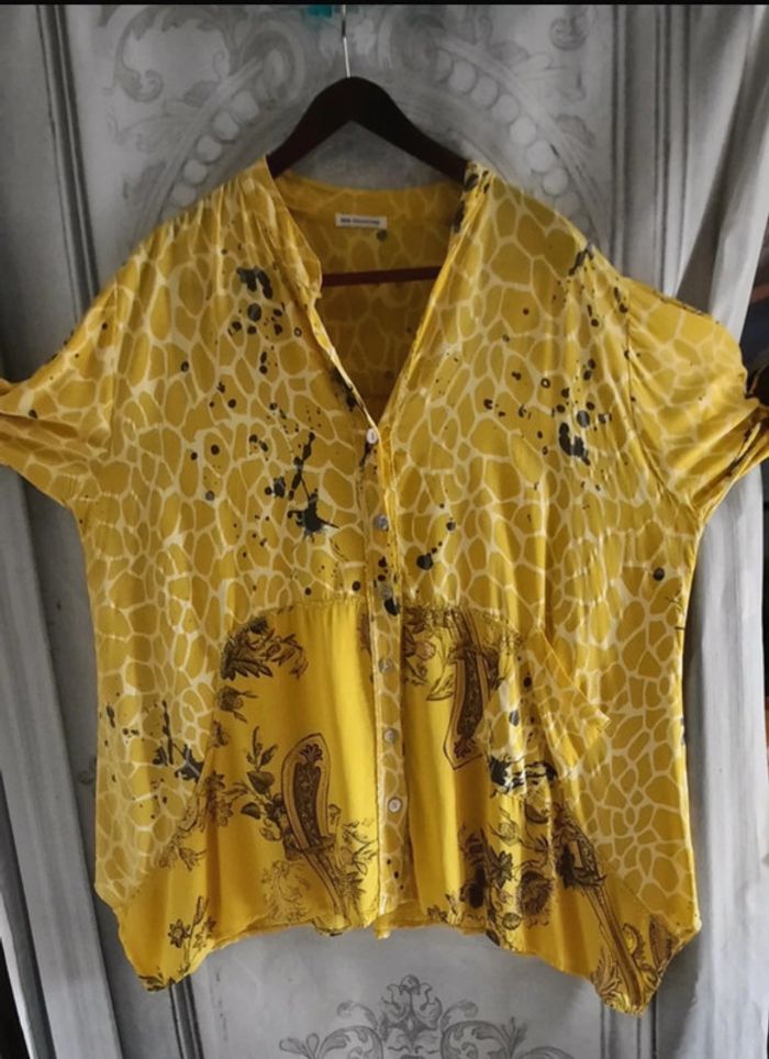 Très jolie, achetée sur ce site mais bcp trop grande pour moi. Manches longues retenues avec patère, fentes sur les côtés, une poche. Pas d'étiquette donc pas de taille, je dirais du 44 au 48 Aisselle a aisselle 68 cm Comme neuve