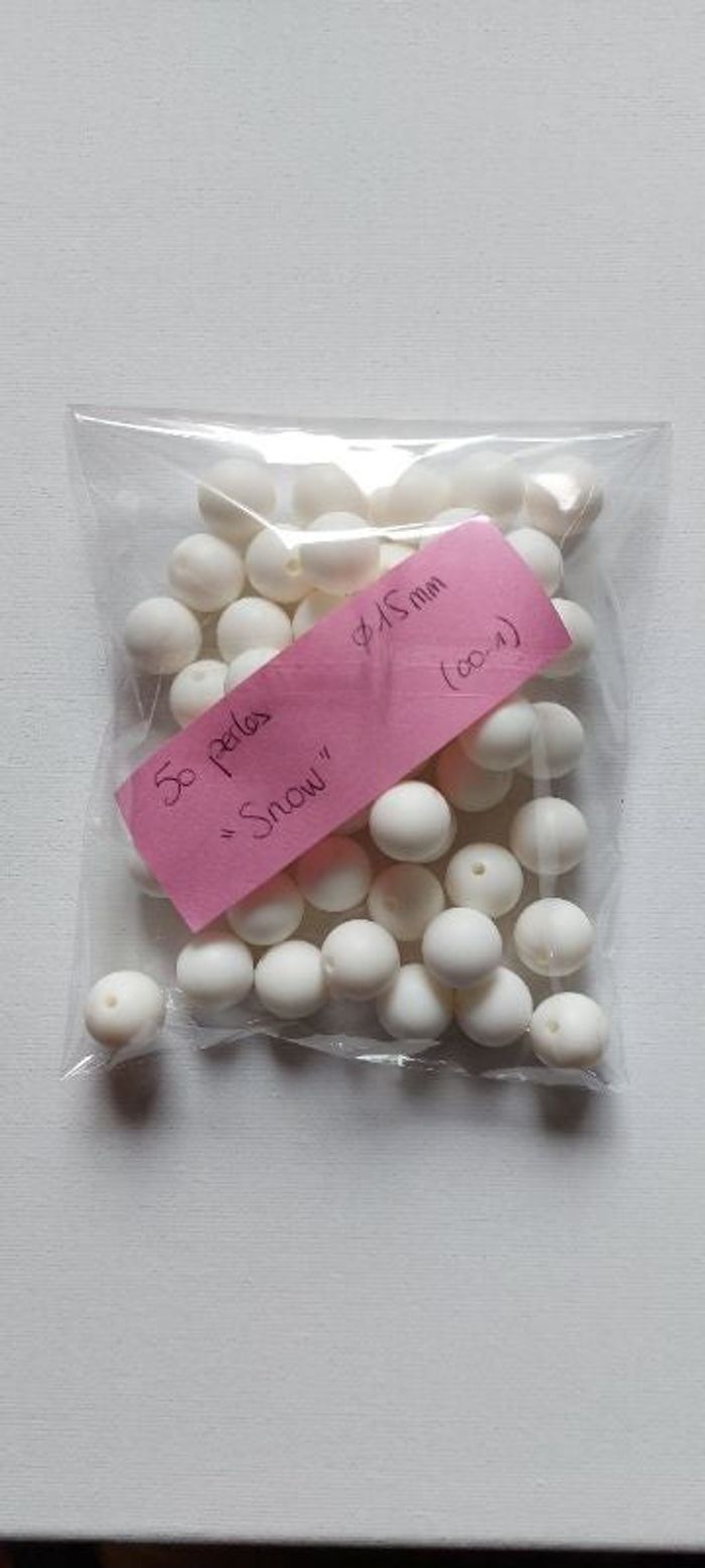 Lot de 50 perles silicone diametre 15 mm pour fabrication de colliers ou attache tétine. Couleur blanc 0,10€ la perle. Neuves car cessation d'activité. ⚠️ réductions lots activée . Aucune négociations supplémentaires acceptées pour ces articles #perlesilicone #attachetetine #perlefantaisie #collierfantaisie #collierenfant #collierdeperle