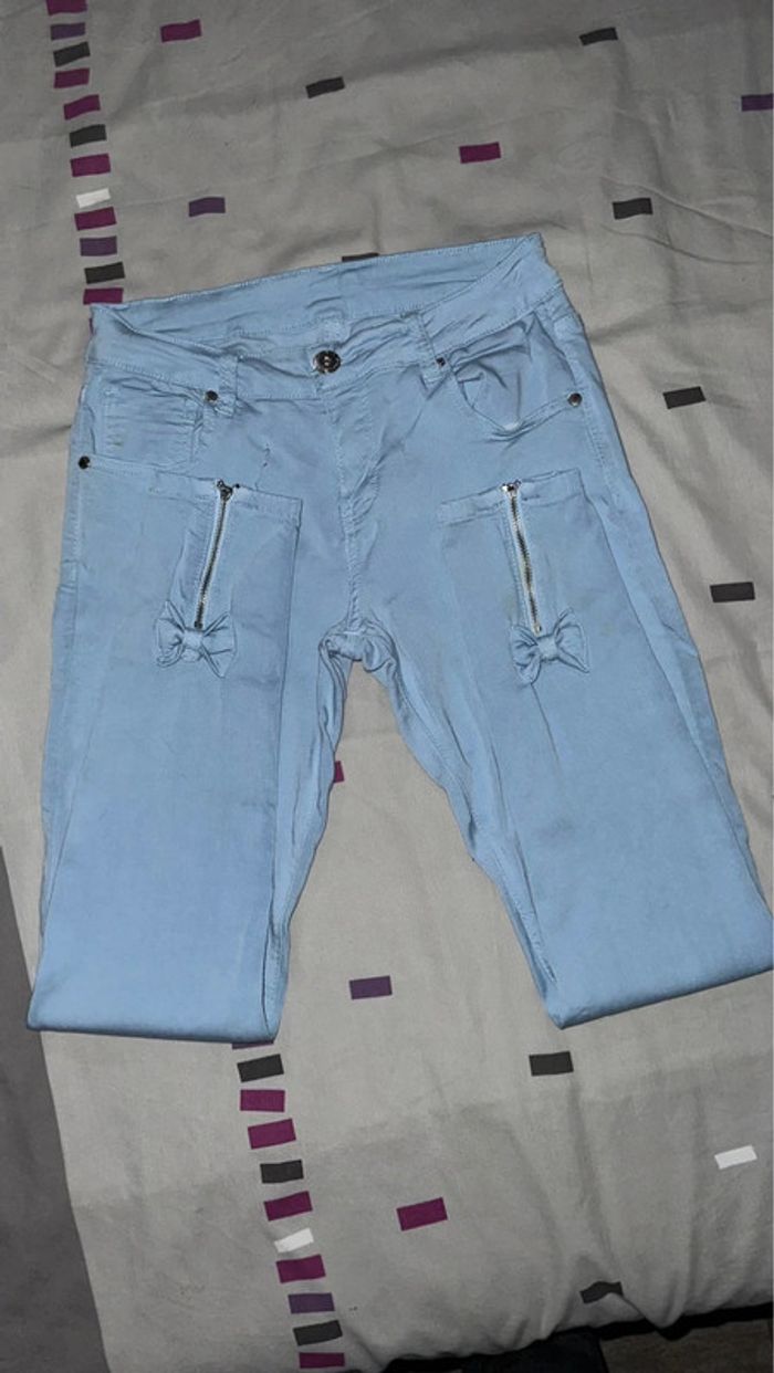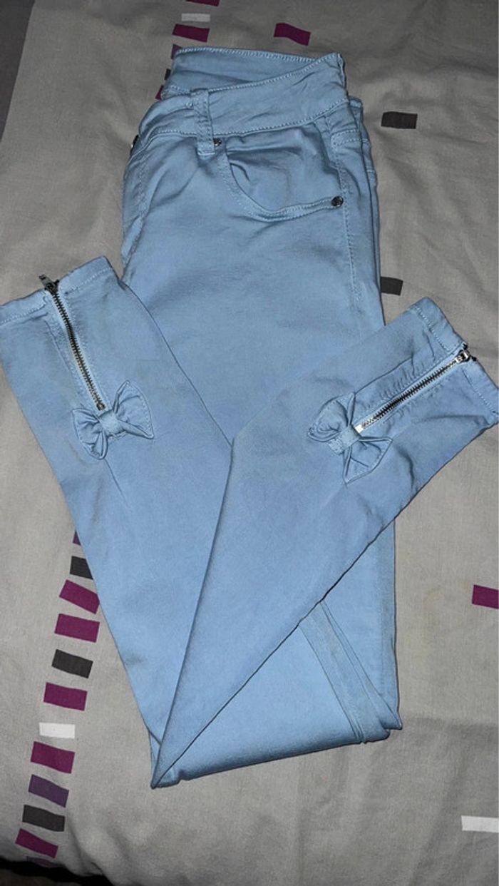 Porté une seule fois et stocké dans mon armoire. Un peu froissé car je viens de le laver. Pantalon original avec fermetures et petits nœuds en bas Pas de vinted go svp #migne22pantalon