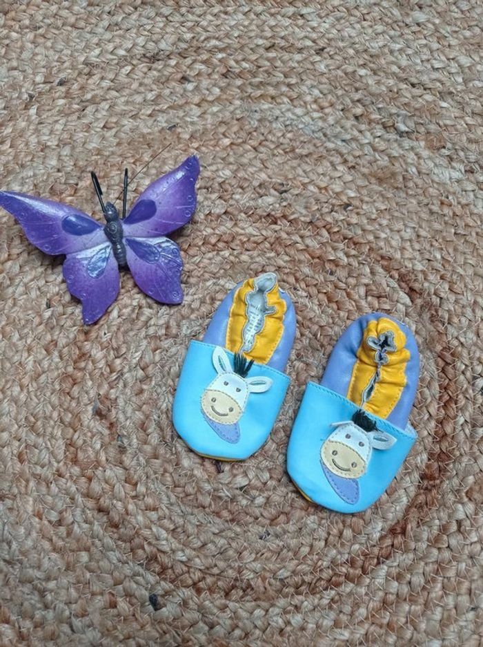 #DCR_accessoires #DCR_ane Doudou et compagnie Chaussons à enfiler âne Neuf Bleu violet jaune 6/12 mois (Équivalent en Pointure : 12,5) C002