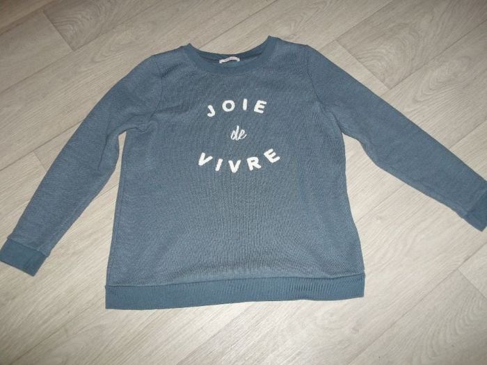 Sweat shirt CAMAIEU bleu outremer et mention "Joie de vivre" 40 TBE