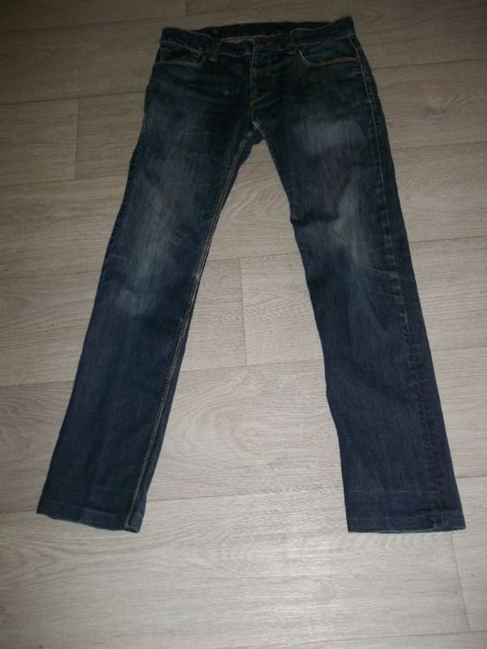 Jean KAPORAL bleu foncé délavé par endroits "tête de mort" taille 38/40 BE