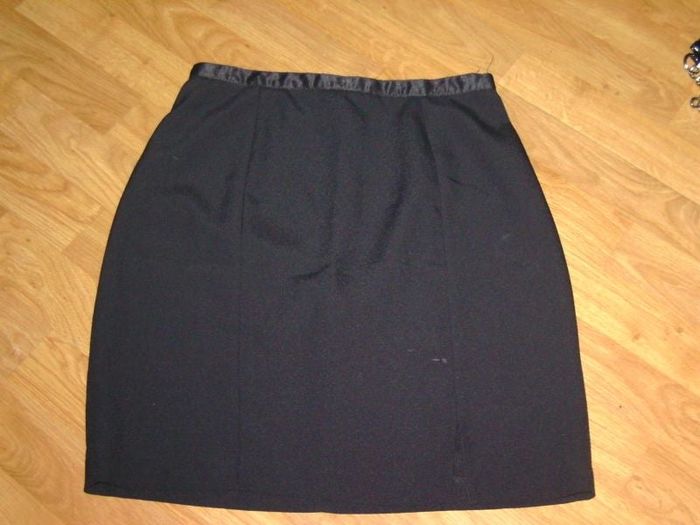 Jupe fluide légère, taille 36/38 (voir mesures), de couleur noire, se fermant par fermeture zip sur l'arrière, avec un liseré en satin à la taille, et une petite fente sur le devant. TBE Tour de taille à plat : 36 cms Tour de hanches à plat : 46 cms Longueur : 48.5 cms