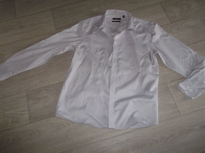 Chemise de marque BURTON, taille XXL, coupe droite, de couleur gris clair avec de fines lignes dans le tissu, se fermant devant par des boutons, ainsi qu'aux bas des manches. TBE Epaule à épaule : 48 cms Aisselle à aisselle : 62 cms Longueur : 78 cms
