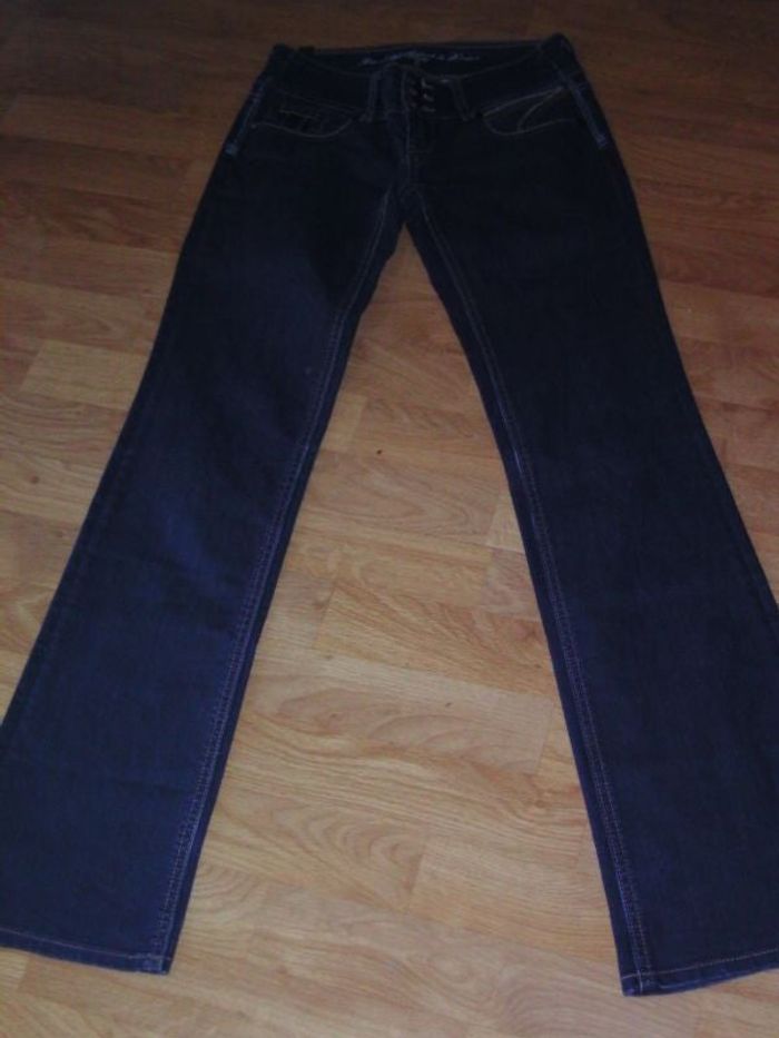 Jean LA MODE EST A VOUS bleu foncé et décos taille 36 NEUF