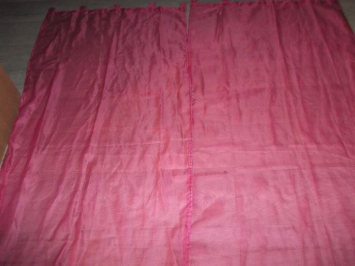 Paire de rideaux voilages de couleur rose fuchsia à pattes. TBE. Dimensions : 69 x 162 cms X2