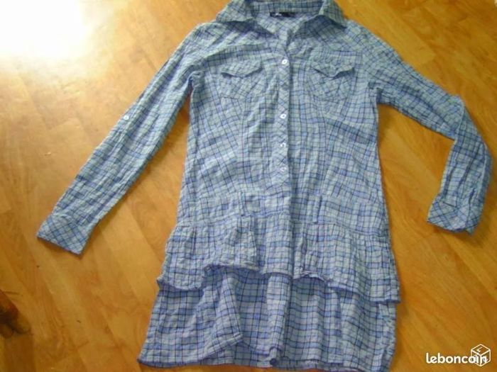 Tunique MIM carreaux gris bleus blancs volantée S TBE