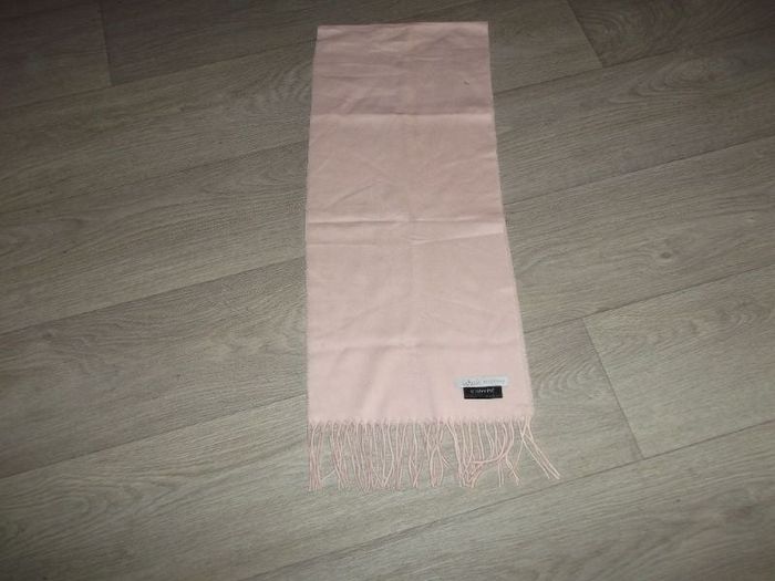 Echarpe de marque LAFAYETTE ACCESSOIRES, de couleur rose clair, avec des franges à chaque extrémité de 8 cms. 100% acrylique Longueur totale avec franges : 154 cms. TTBE