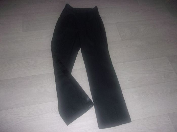 Pantalon de marque JOSEPH, taille 34/36 (voir mesures), de couleur noir en tissu crêpe avec des liserés satin sur le côté des jambes , très fluide, se fermant devant par fermeture zip et un bouton, passants pour ceinture, 1 poche sur l'arrière fermée par un bouton. TBE Tour de taille à plat : 32 cms (taille haute) Longueur : 102 cms