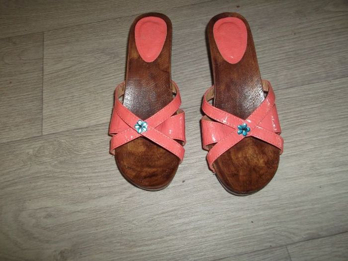 Sabots simili cuir saumon talons faux bois 38 TBE