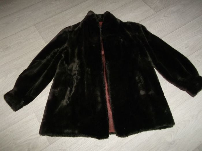 Veste de marque BRESNU & Cie, taille 38/40 (voir mesures pas d'étiquette) en fausse fourrure de couleur marron, se fermant devant par des petits crochets, 2 poches côtés. TBE pour l'extérieur mais BE intérieur car la doublure a été rafistolée. Made In France Epaule à épaule : 39 cms Aisselle à aisselle 53 cms: Longueur : 76 cms