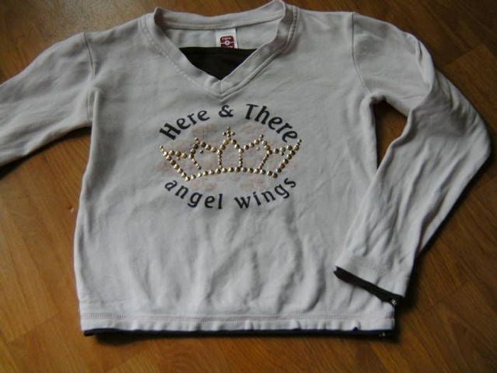 Tee shirt de marque C&A , taille 146 soit 11/12 ans, manches longues, de couleur rose très pâle et marron, écritures également marron et des petits clous dorés devant. TBE