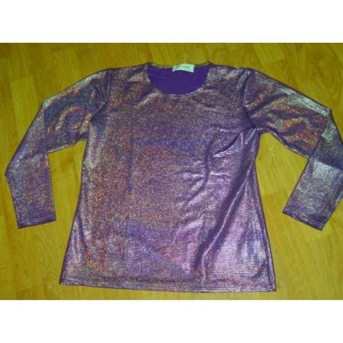 Tee shirt UGO REALI "soirée" lamelles brillantes violet taille 38 TBE