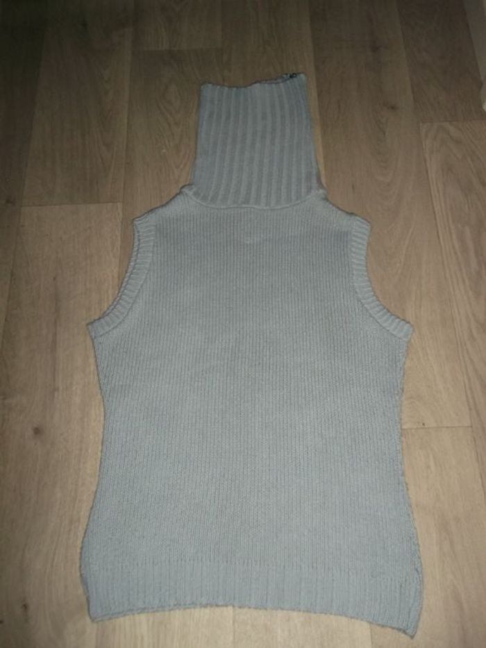 Pull JENNYFER bleu clair sans manches col cheminée zippé M TBE