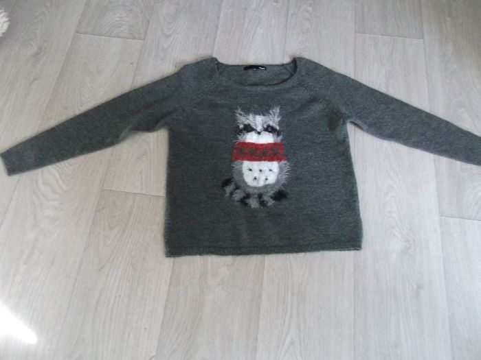 Pull ETAM gris et "Hibou" devant taille XS TBE