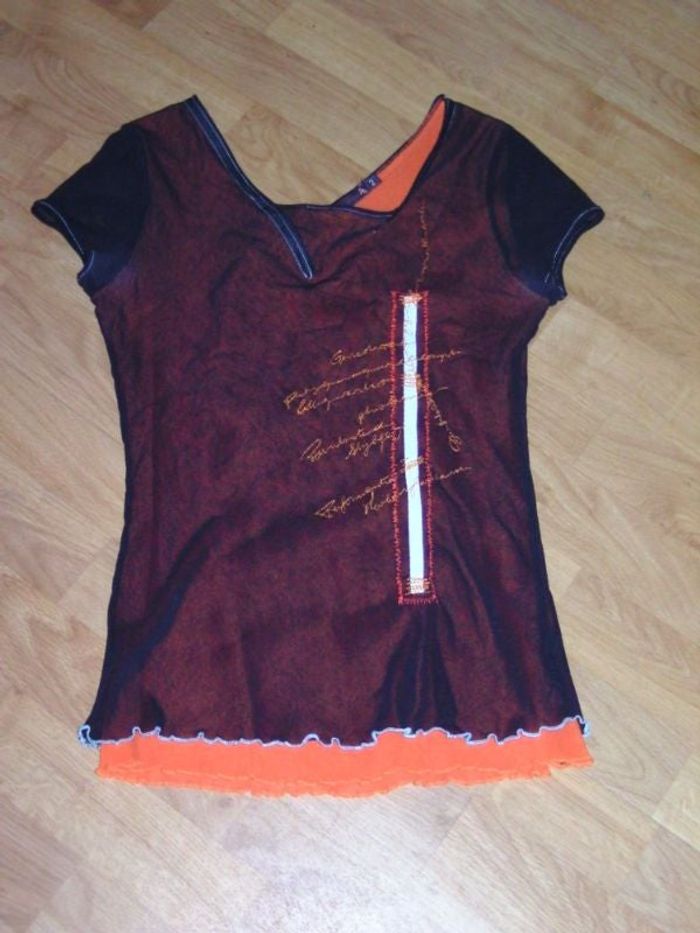 Tee shirt LA MODE EST A VOUS voile noir et orange 38 TBE