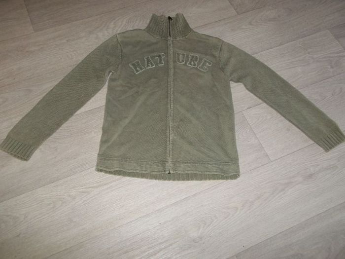 Gilet de marque OKAIDI, taille 12 ans, pouvant convenir à garçon ou fille, se fermant devant par fermeture zip, col haut, avec la mention "NATURE" devant. TBE
