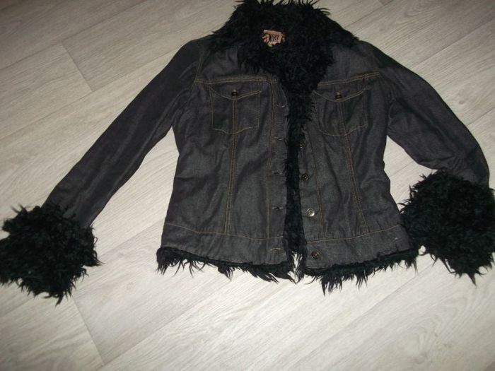 Veste INDIAN ROSE jean noir fourrée taille 40 TBE