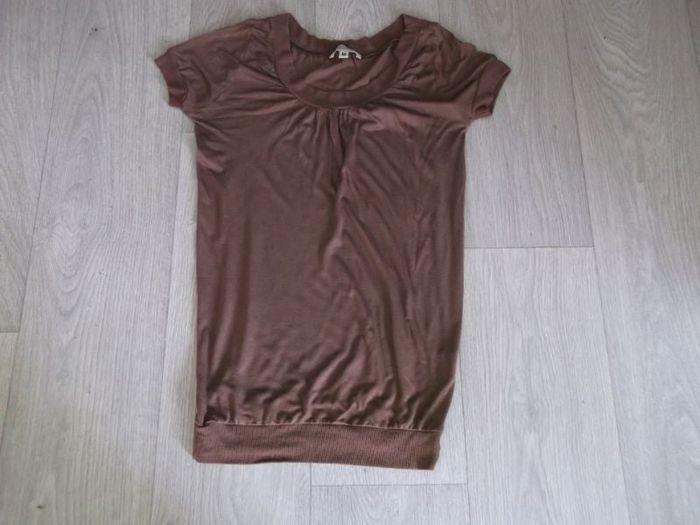 Tunique JENNYFER, taille M/38/2, fluide de couleur marron, manches courtes avec des pinces en haut. TBE Epaule à épaule : 37 cms Aisselle à aisselle : 47 cms Longueur : 65 cms