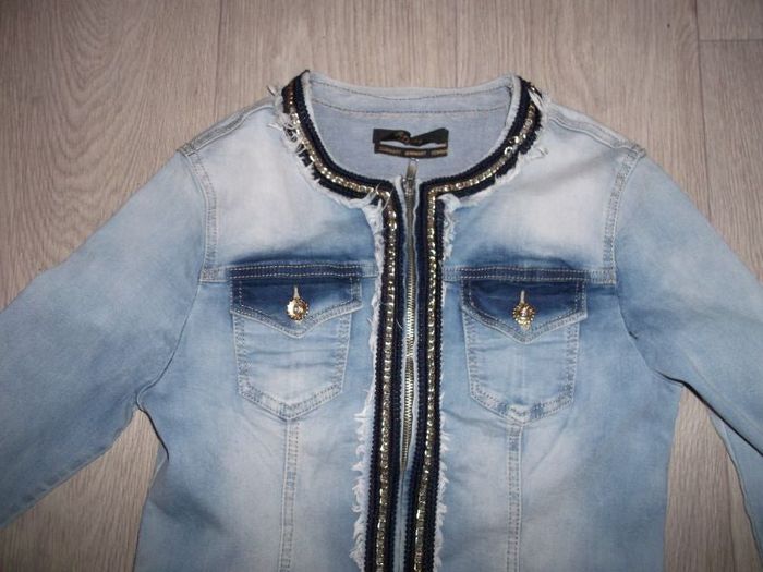 Veste REALTY jean délavé et foncé décos chainette dorée 38 TBE