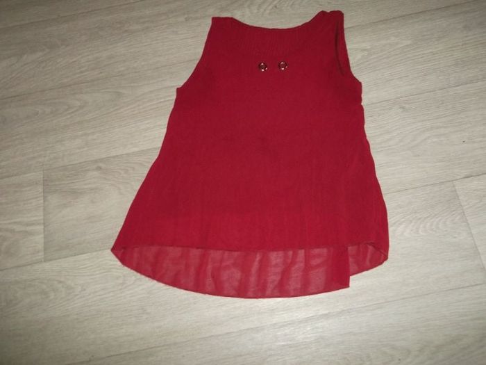 Top fluide voile, doublé devant, taille 38/2/M, de couleur bordeaux avec 2 gros oeillets devant dorés, et sur l'arrière le tissu est plissé. TBE Aisselle à aisselle : 45 cms