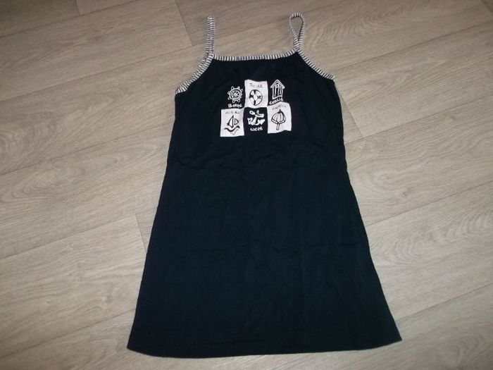 Chemise de nuit ou nuisette de marque THE CITRON, taille L, en coton, de couleur bleu marine avec des encarts blancs concernant la "mer". TBE